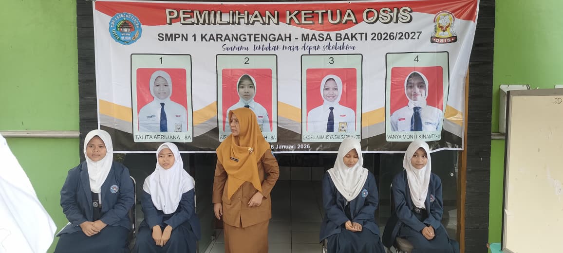 Dalam rangka pelaksanaan program Kesiswaan SMP Negeri 1 Karangtengah yang berada di bawah bidang kewargaan pada tanggal 26 Januari 2026 diadakan kegiatan Pemilihan Ketua Osis yang diikuti oleh 4 orang calon ketua Osis yaitu :