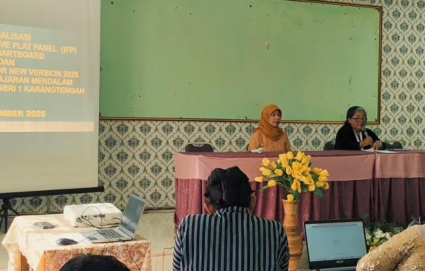 22 Desember 2025 – Bertepatan dengan peringatan Hari Ibu, SMP Negeri 1 Karangtengah menggelar Workshop Sosialisasi Media Interactive Flat Panel (IFP) dan Aplikasi e-Rapor 2025. Kegiatan yang berlangsung di laboratorium komputer ini diikuti oleh seluruh dewan guru guna mewujudkan pembelajaran mendalam (deep learning) yang berbasis teknologi mutakhir.